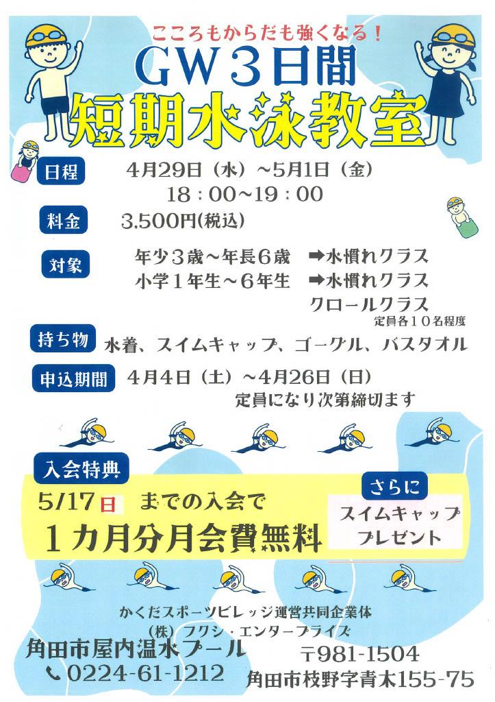 ・対象:年少3歳~年長6歳 →水慣れクラス
